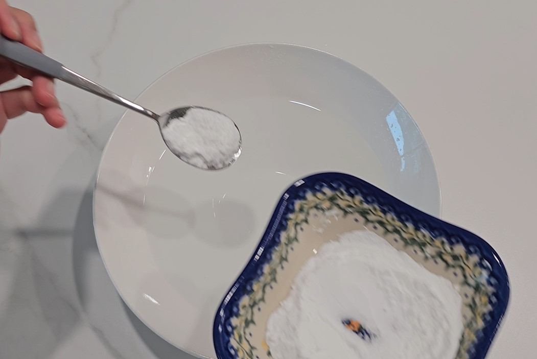 너무 뜨거운 물은 베이킹소다 가루가 모두 녹아 세척 효과를 떨어뜨릴 수 있으니