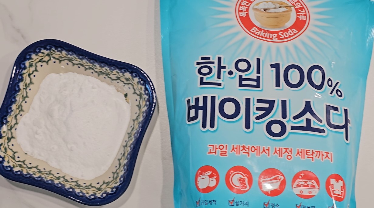베이킹소다 물에 충분히 담궈준 후에 물기를 잘 짜주면 되겠습니다.