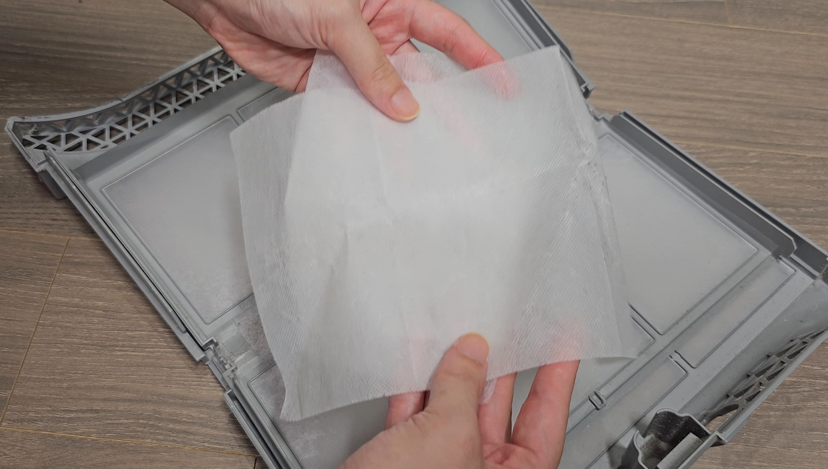 이제는 필터를 넣는 공간에도 구연산수를 활용하여 닦아줄텐데요. 틈새와 안쪽까지 먼지가 보이는 곳이라면 구석구석 잘 닦아줍니다. 어떤가요? 이제 깨끗해졌죠?