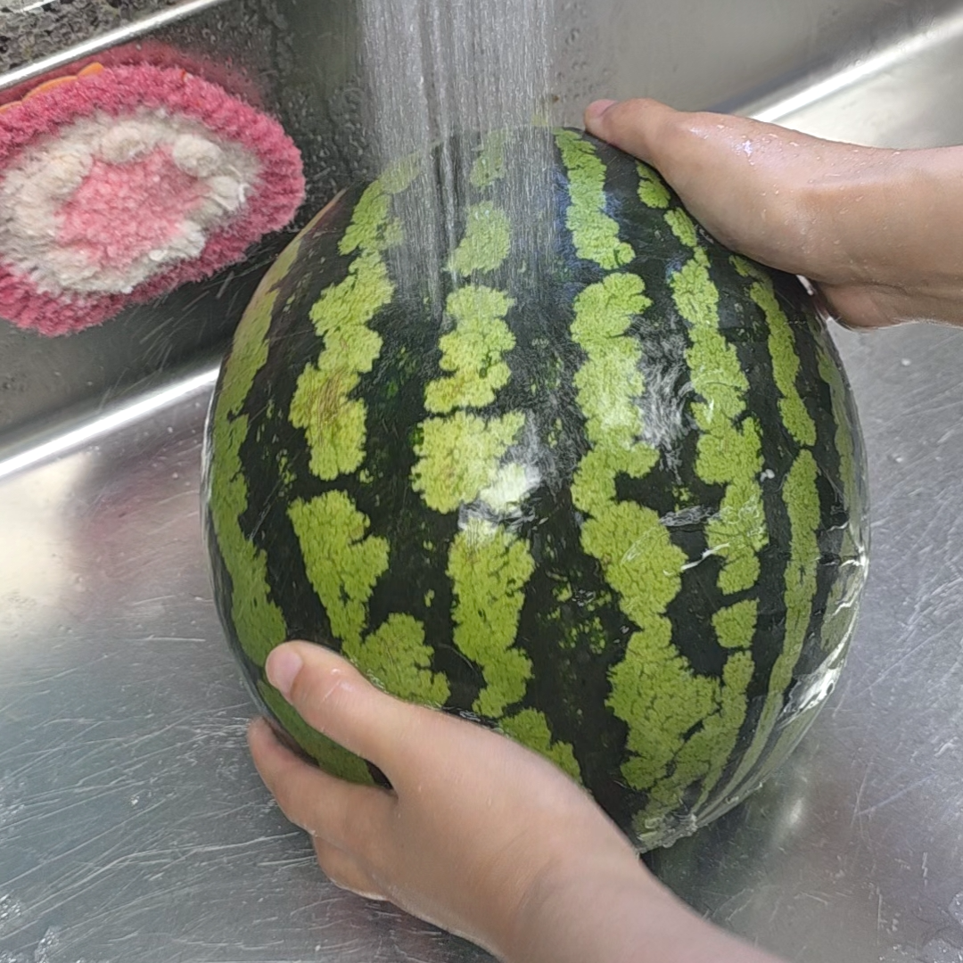 먼저 흐르는 물에 수박을 깨끗하게 씻어주세요.