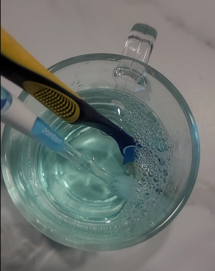 그래서 사실 식초가 칫솔 세균을 제거하는데 가장 탁월하긴 합니다만, 칫솔에 식초 냄새 배는게 싫어서 기피하시는 분들이 있으실 겁니다. 괜히 식초 냄새 베길 것 같고, 냄새에 예민하신 분들은 찝찝해하시기도 하는데요.