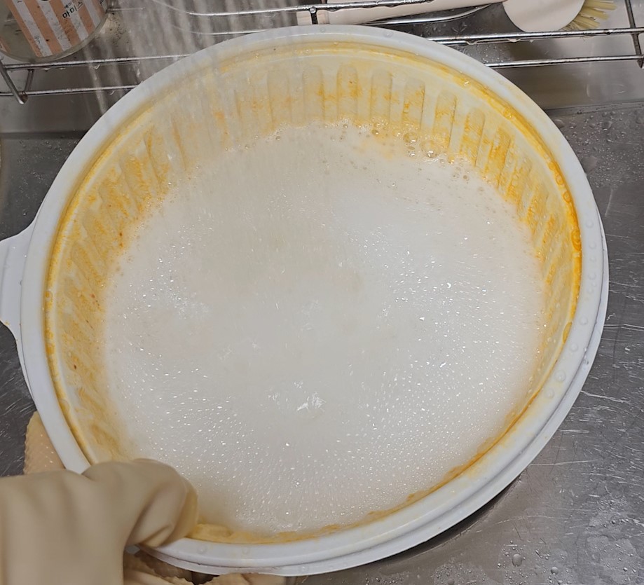 이제 본격적으로 배달용기를 세척하는 작업을 해볼텐데요.