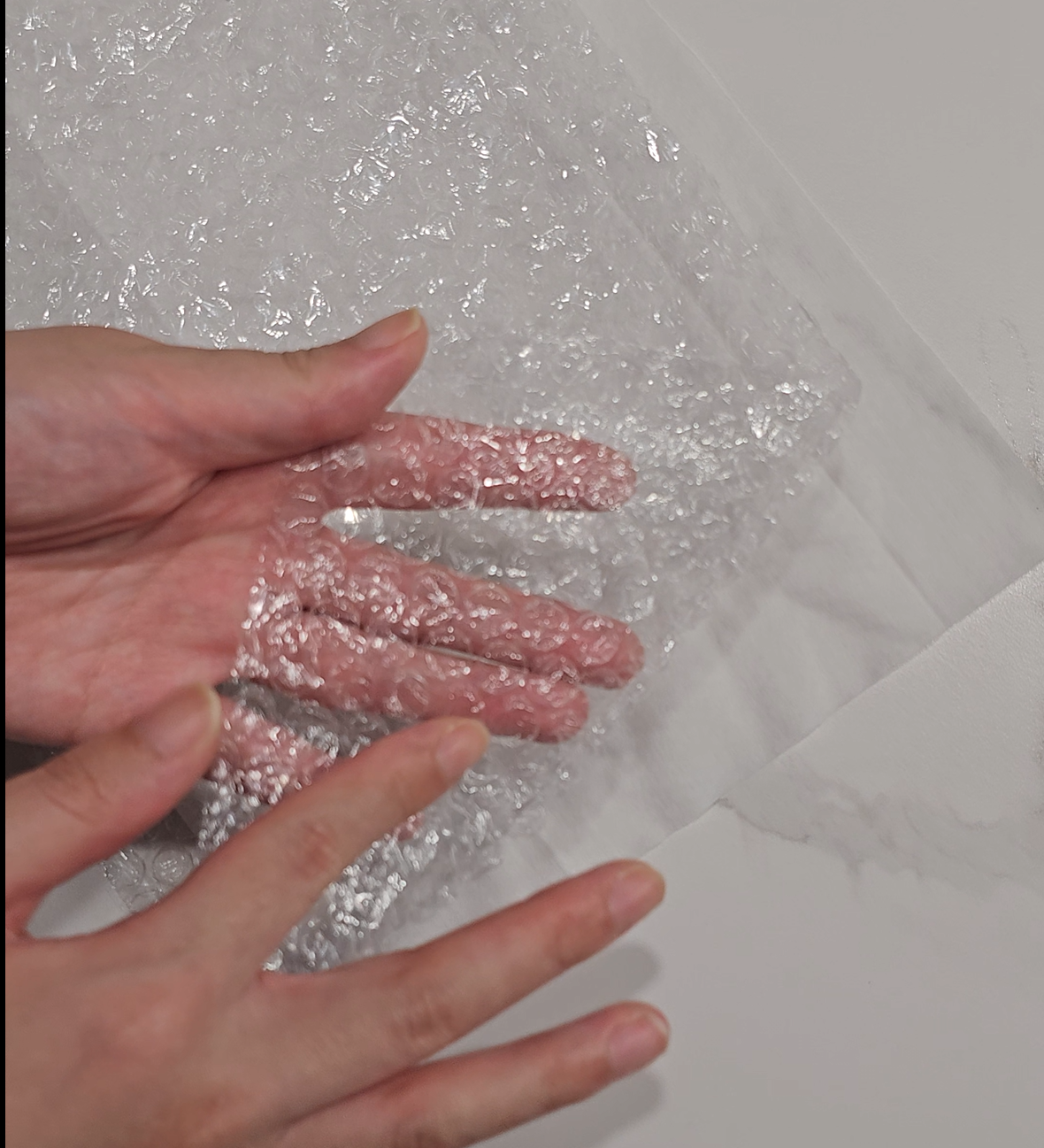 이때 주의사항은 뽁뽁이의 울퉁불퉁한 면이 아래로 향하게 해줘야 합니다. 왜 그래야 하는지 혹시 눈치채셨나요?