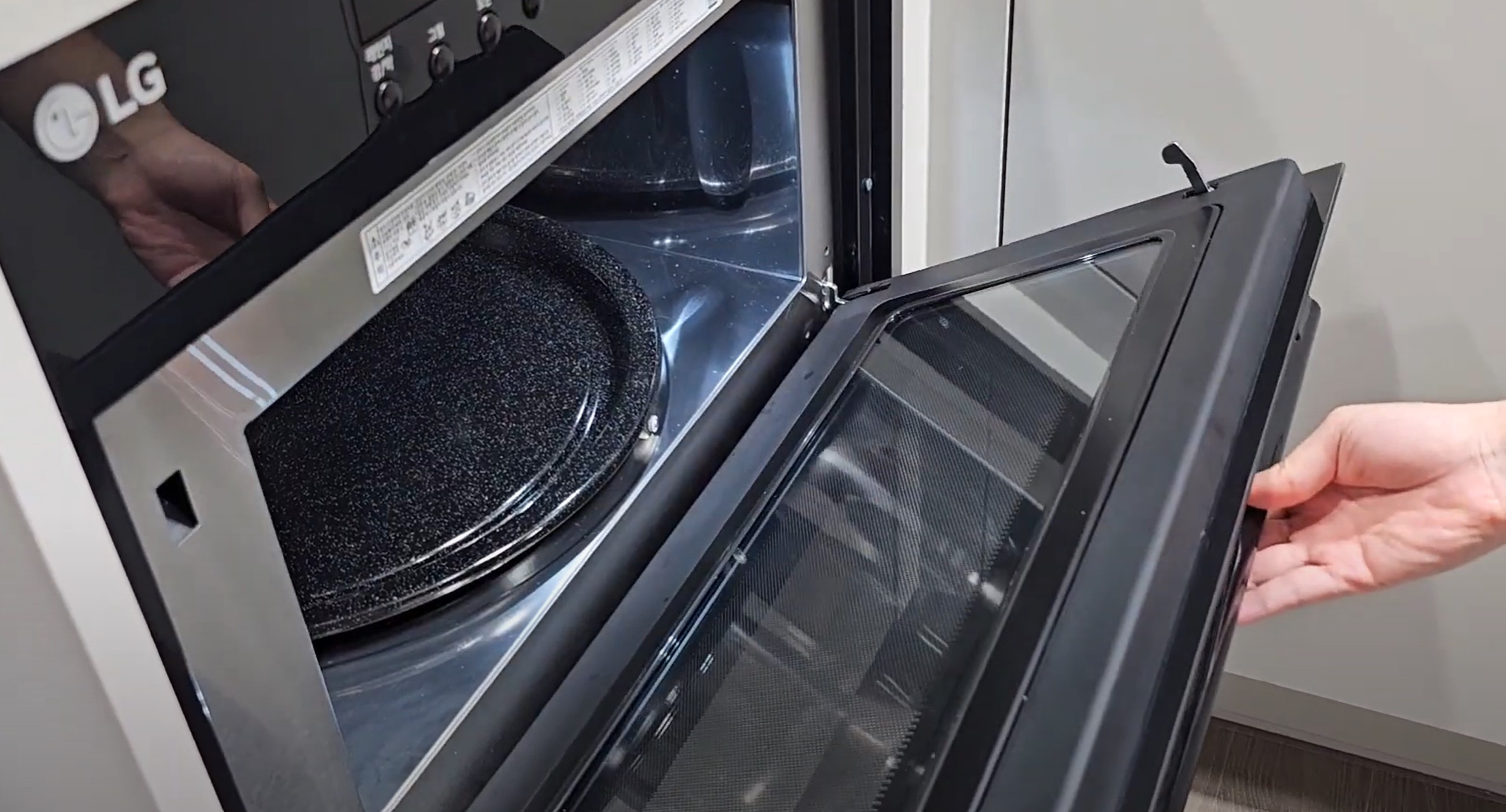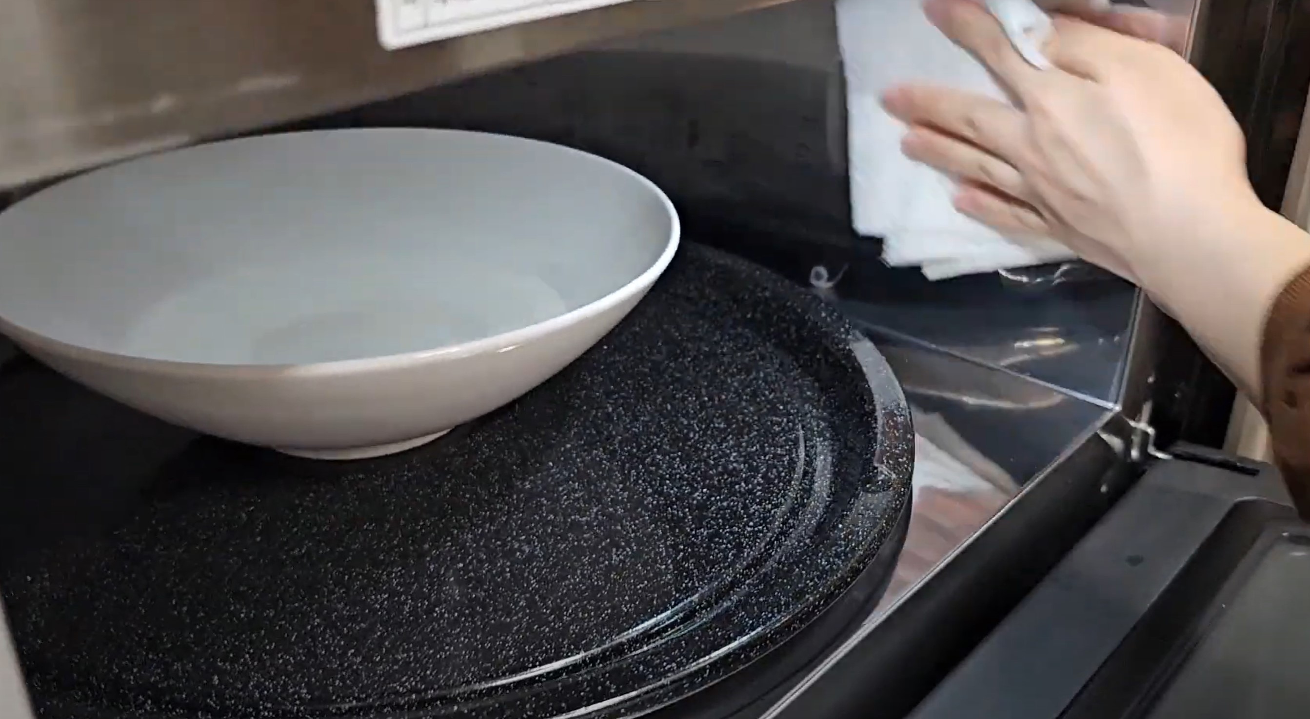 그리고 전자레인지 문을 열고 키친타월이나 마른 걸레로 닦아주면 되겠습니다.