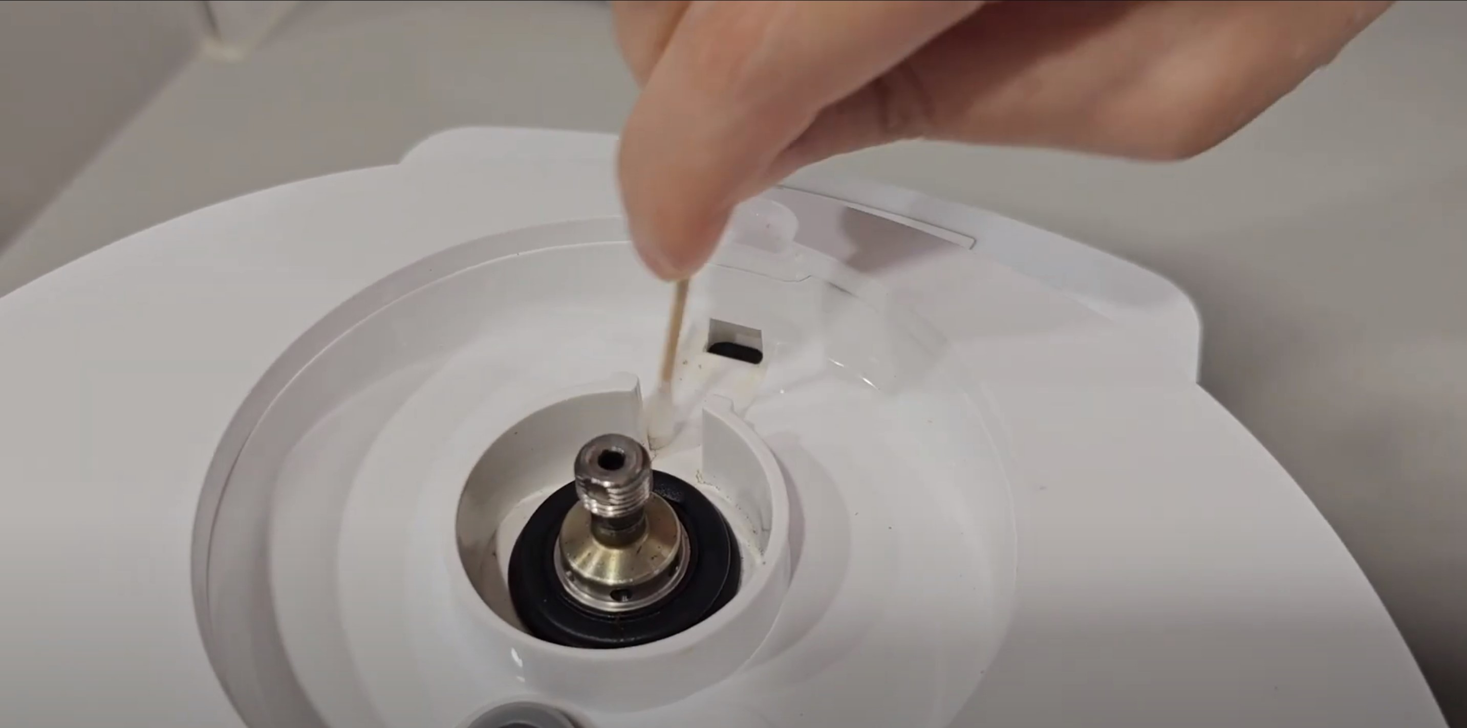 물때가 제일 많은 스팀 주변은 면봉을 사용해서 청소해주세요.