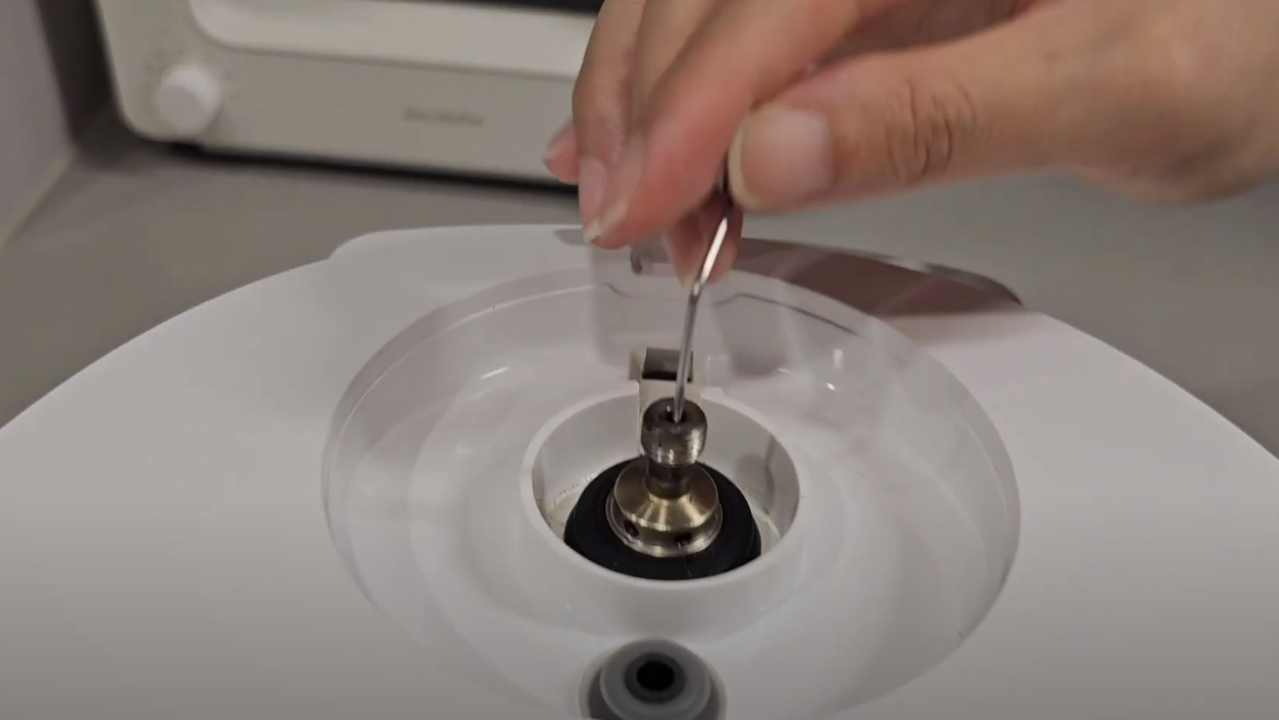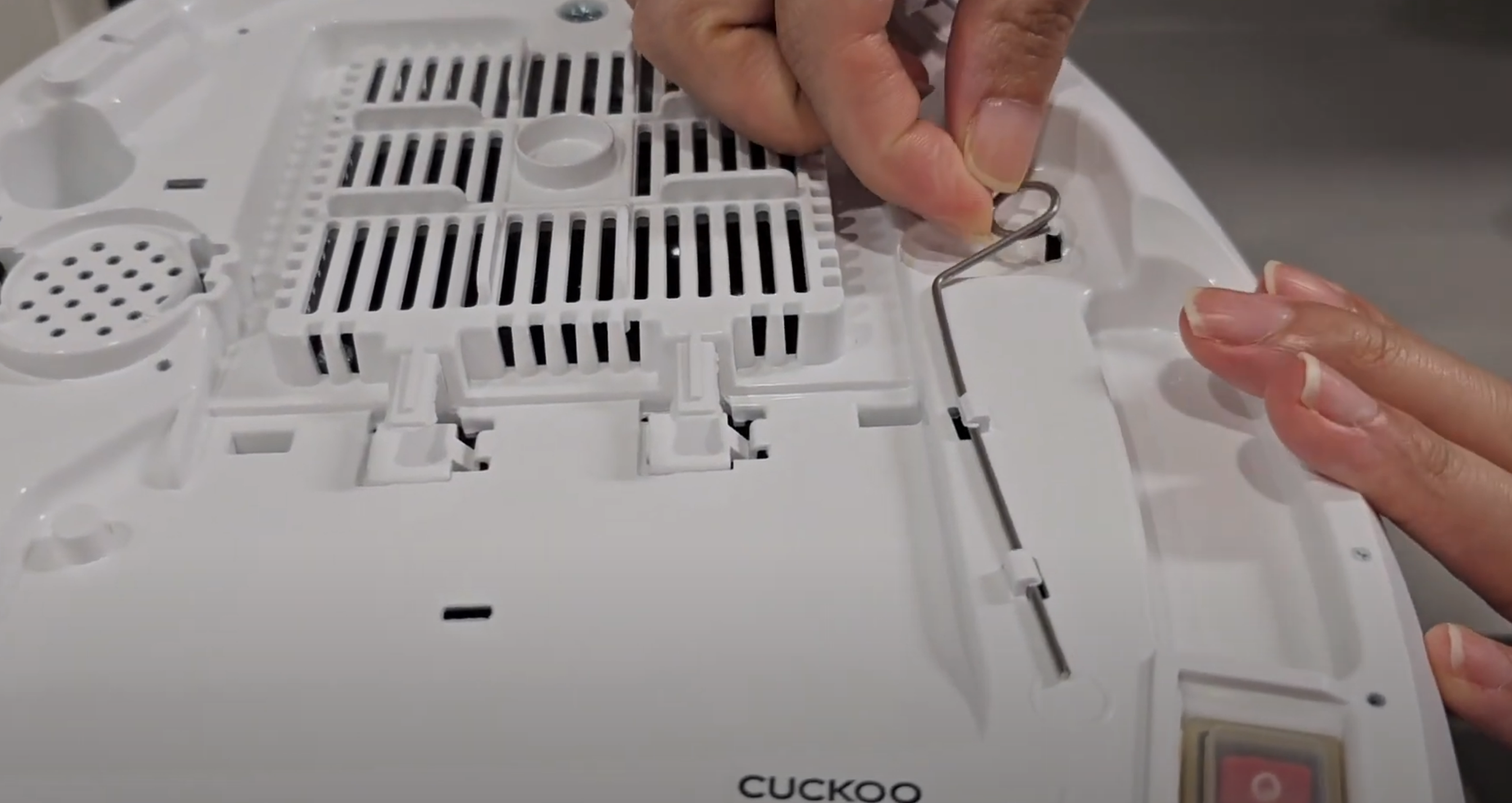 3. 밥솥을 뒤집어 청소용 핀을 준비