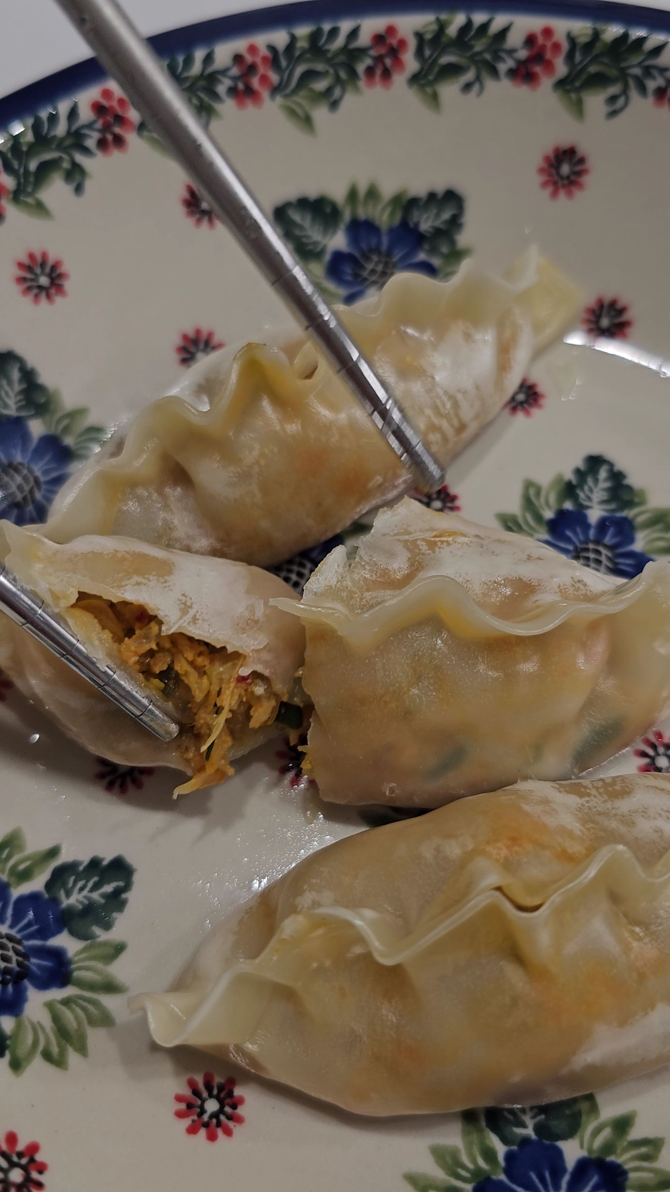 짠!! 3분 돌려주면 위와 같이 만두가 완성되었는데요.