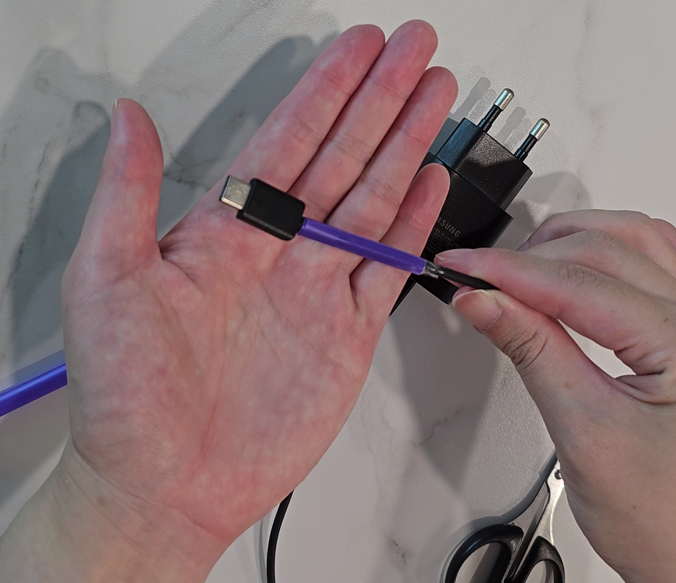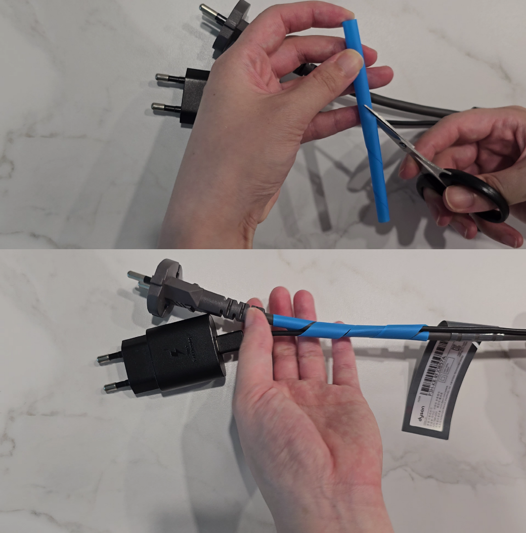 두 번째는 휴대폰 충전기나 전선을 자주 사용하다보면 한번쯤은 이 부분이 헤지고 아슬아슬 끊어지려고 한 적 있지 않나요?! 이때 빨대를 활용하면 문제를 해결할 수 있어요.