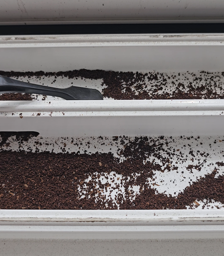 그 뿐만 아니라 커피가루는 탈취효과나 벌레 퇴치효과도 있어서 이 창틀 청소에 아주 적합한 재료입니다.