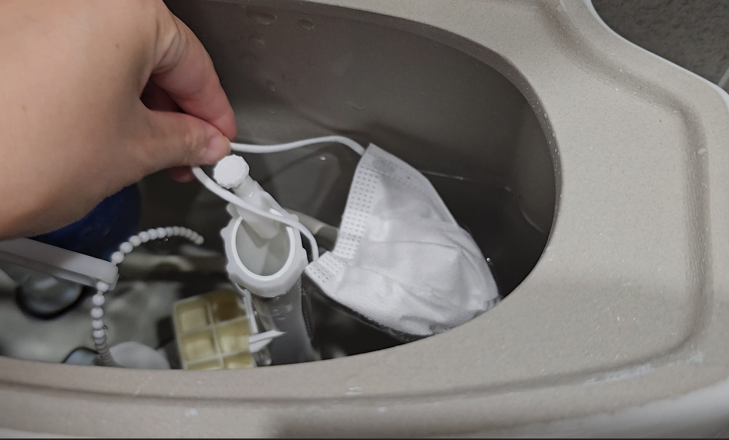 이렇게 하면 완성인데요. 이제 이 마스크 주머니를 변기에 가져가보겠습니다.