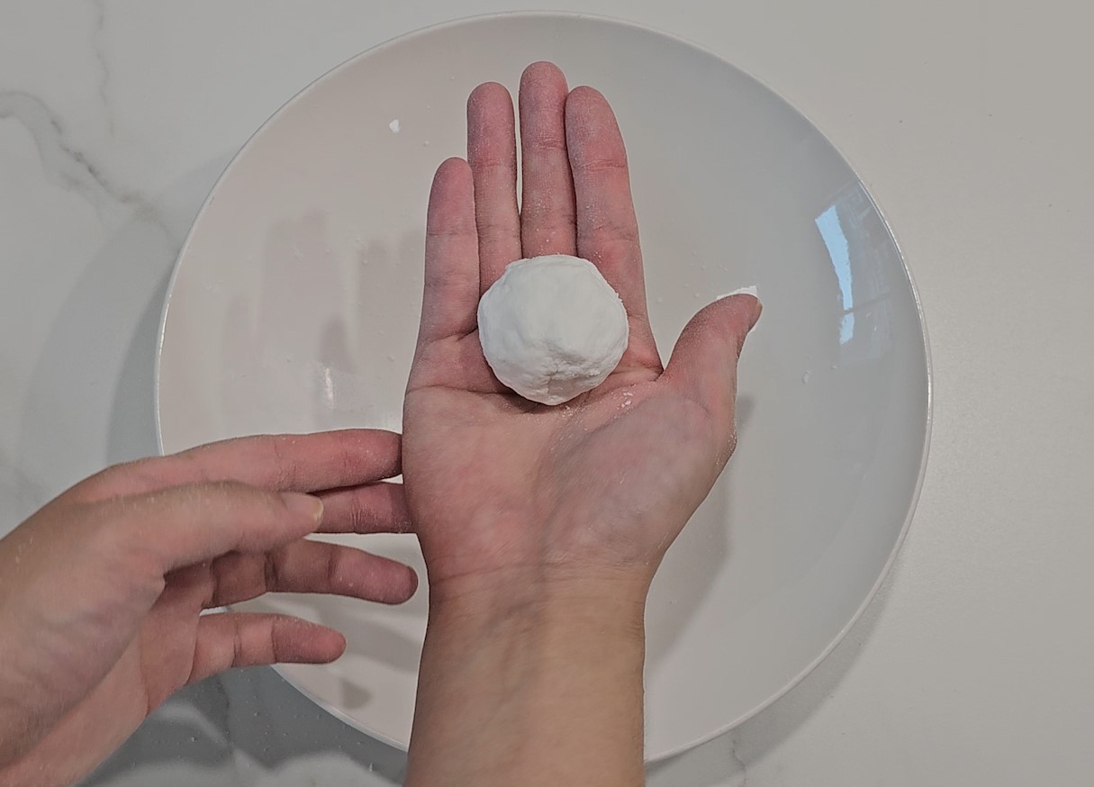 그곳에다가 아까 만든 공을 쏙~ 넣어줍니다.